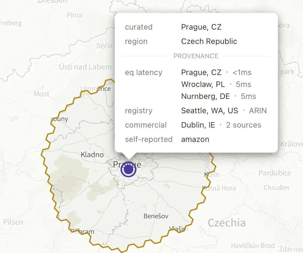 Commercial geolocation services exist to serve ads. They're accurate enough to show you a nearby restaurant, but they reflect where organizations are headquartered—not where specific infrastructure operates. An IP registered to a cloud provider in Seattle might actually be in Prague. Our studies show 40–60% disagreement between commercial providers at city level. For ad targeting, close enough. For GDPR compliance or data localization verification, not even close.