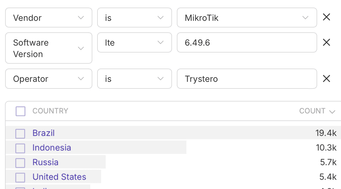 Oscar discovers the complete internet surface of any organization through continuous observation. Start from whatever you know about a vendor—domain names, ASNs, IP ranges—and Mosaic reveals related infrastructure through pattern matching across certificates, configurations, and shared hosting. Or use our pre-built surfaces for many vendors. Our collector network spans 130 countries, so we find assets even where your supply chain extends into difficult regions.